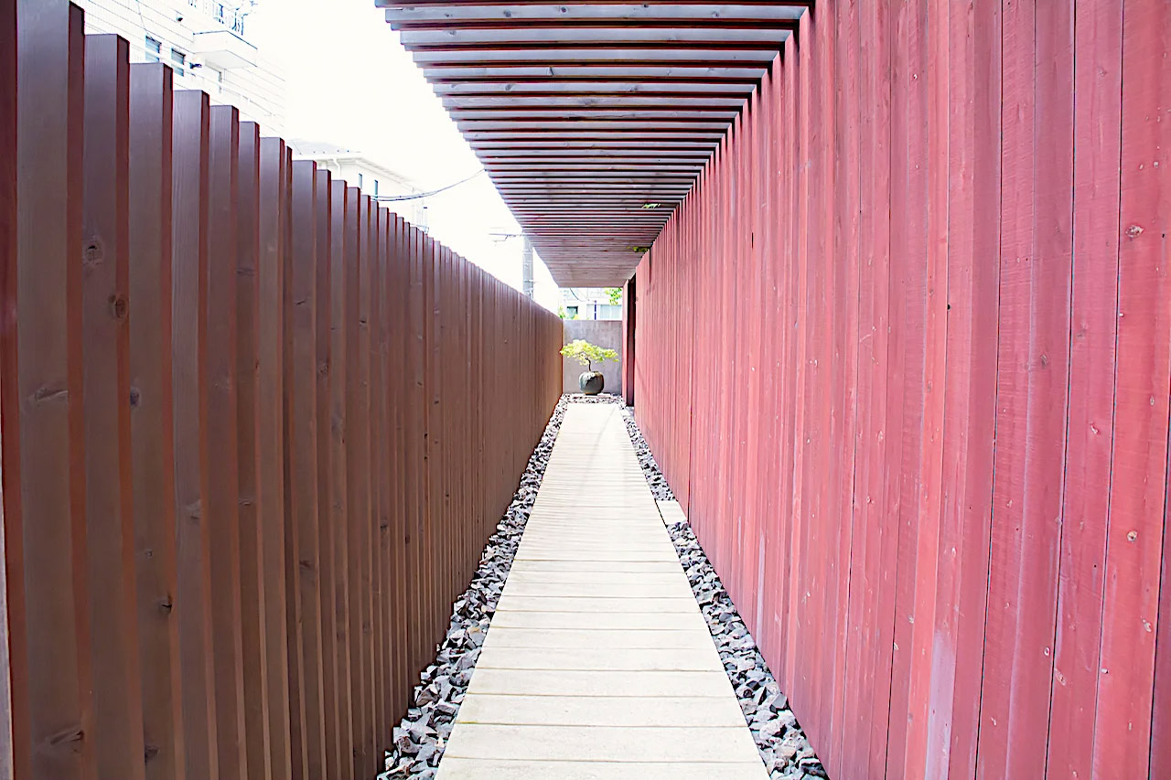 まずは、鮮やかな赤が印象的な“参道”が、訪れる人を物語のはじまりへと誘います。