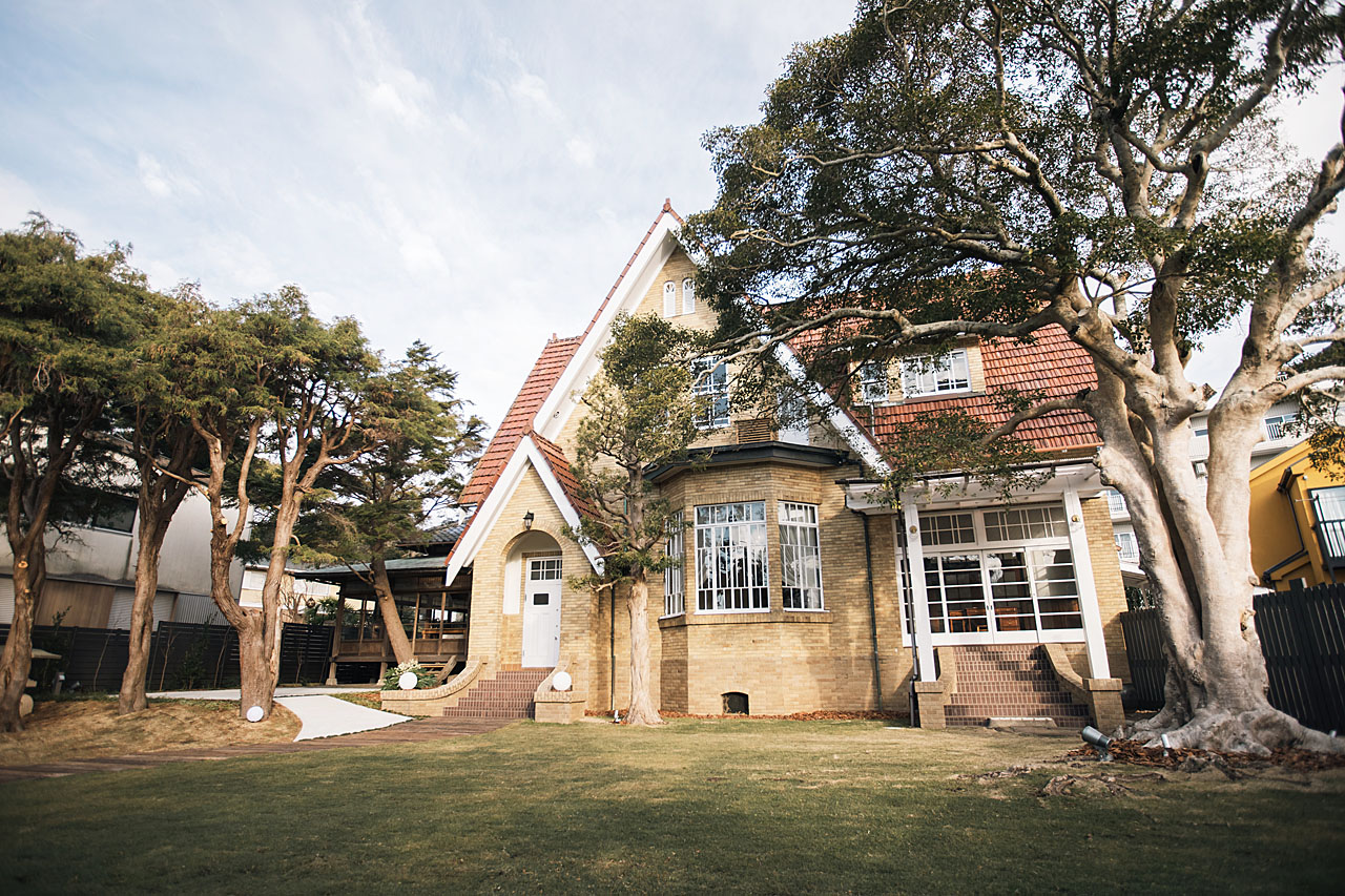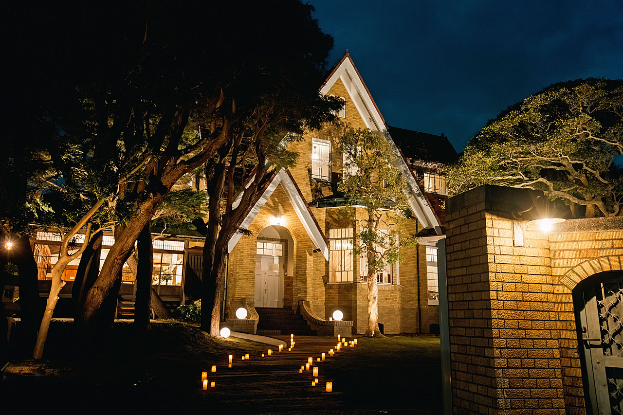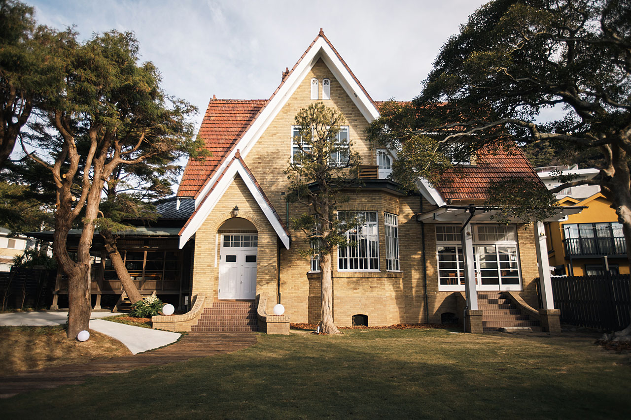 天皇や皇族の別荘である葉山の御用邸からも程近く、首都圏から最も近いリゾートとしても知られるエリアにあるロケーションのご案内です。昭和初期に建てられた築90年の邸宅をリノベーションしたこちらの会場は結婚式場、レストランとして運営されています。