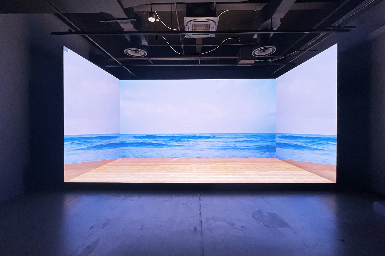 コの字の垂直LED3面と床面LEDによる4面構成のLED空間が特徴的なこちらのロケーション。