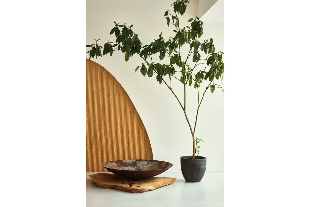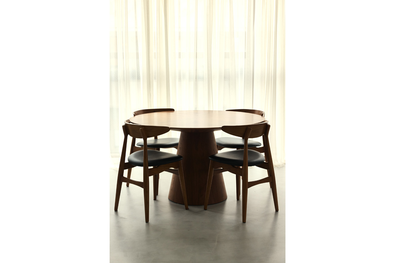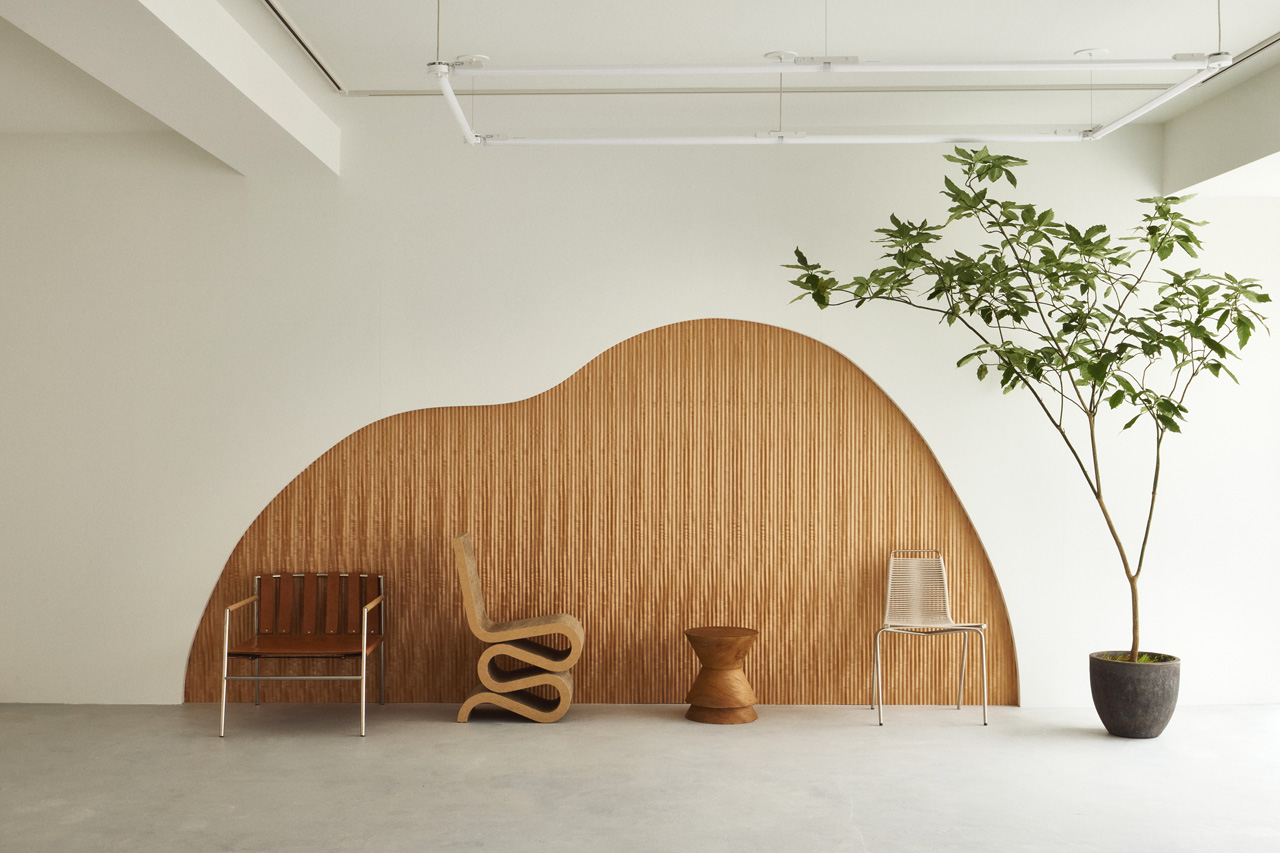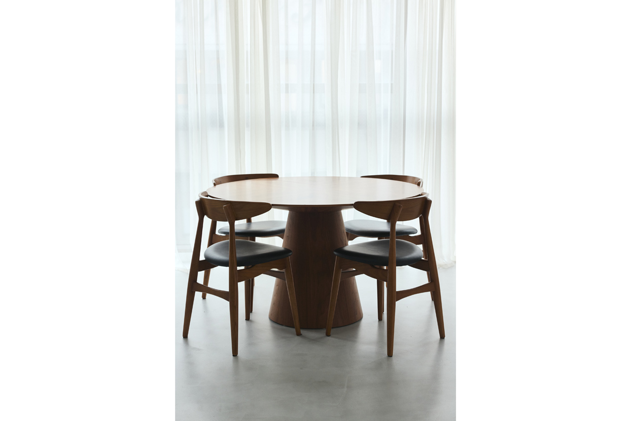 白を基調とした内装にクリーンなモルタルフロア。上質な木製のカウンターや曲線を描いたチーク柾目仕上げのインテリアが上品なアクセントとなっています。