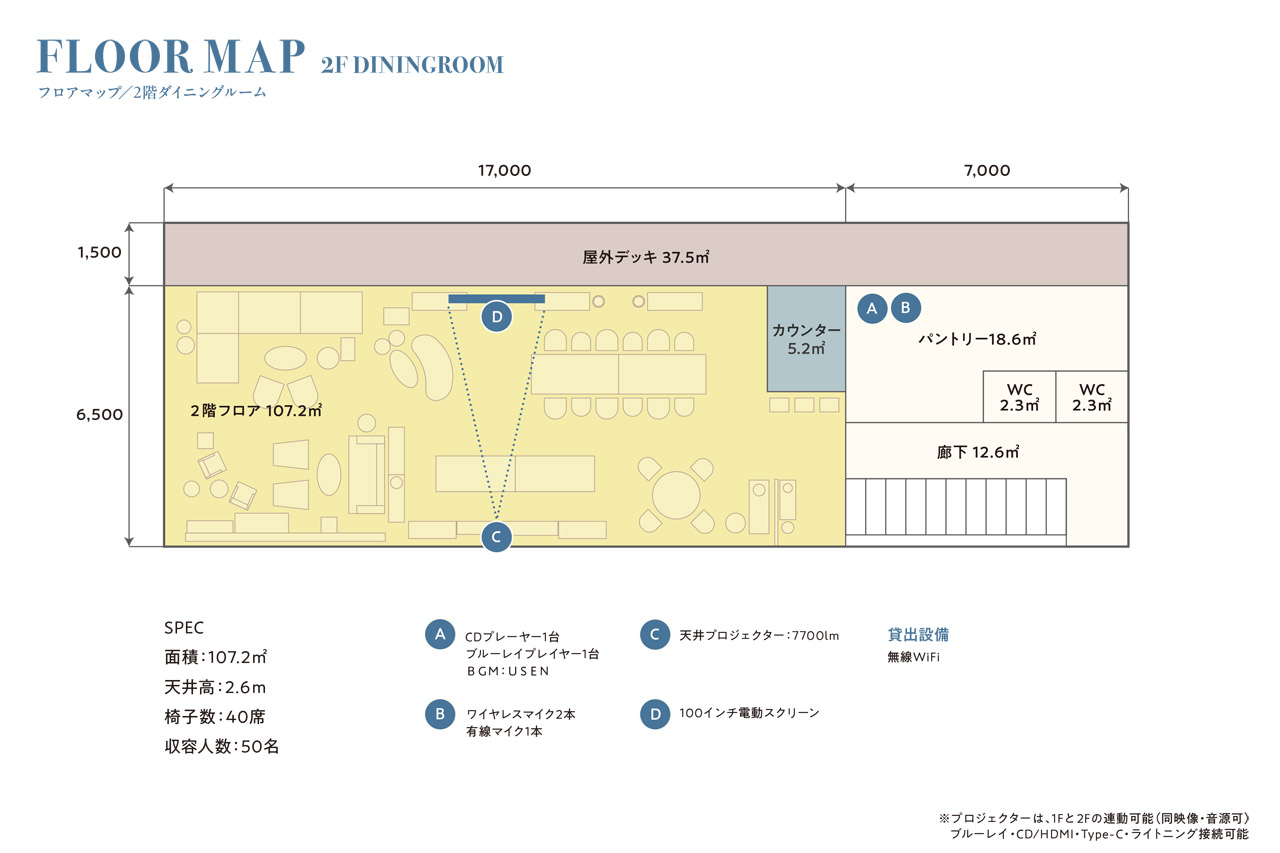 また、外部からのご手配物に関して、会場設備との接続・操作・設営等はお客様の責任下で行ってくださいますようお願い申し上げます。