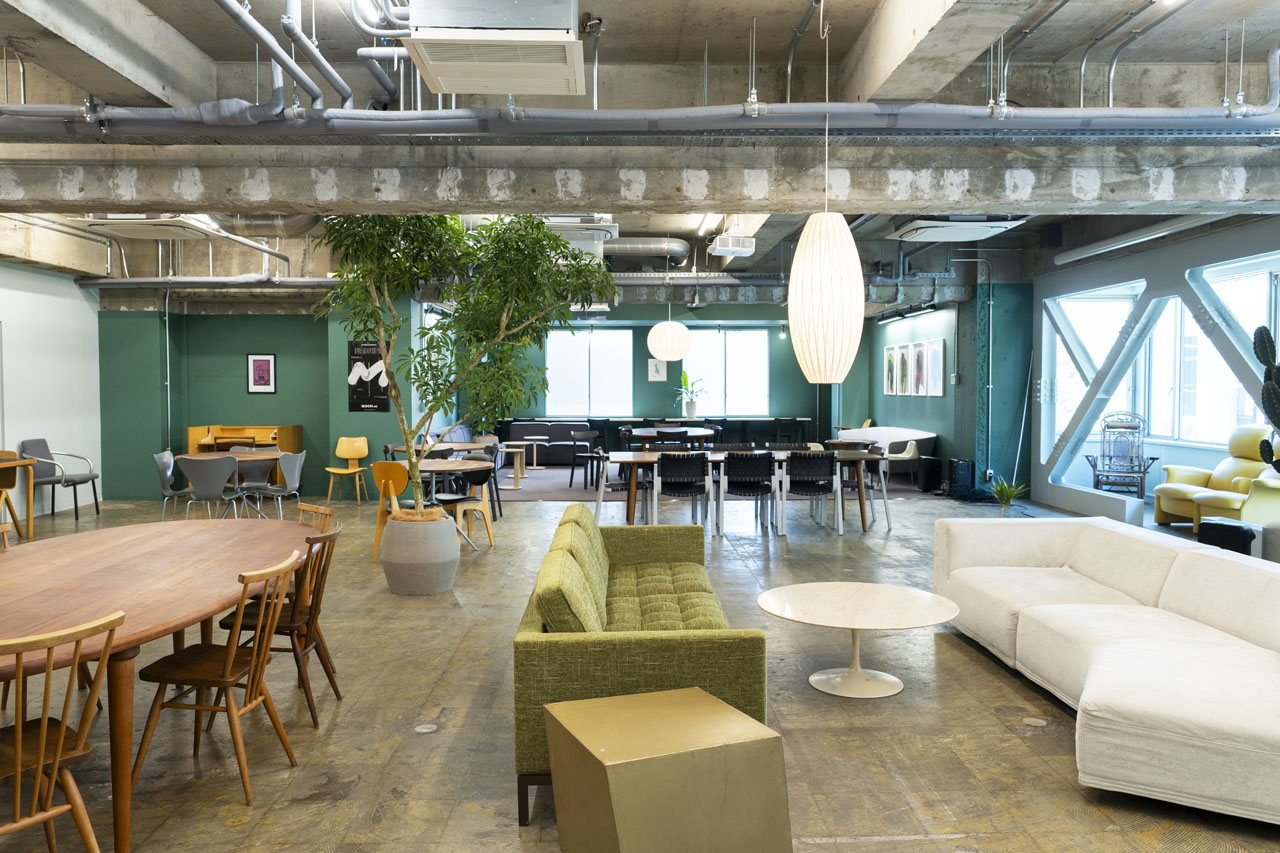広さ212㎡。貝坂通り沿いに位置する6階建てビルの2階フロア。程よくカジュアルなインテリアと自然光を取り入れた明るく開放的な空間が特徴の会場です。レイアウト変更のご相談も可能なイベント会場です。
