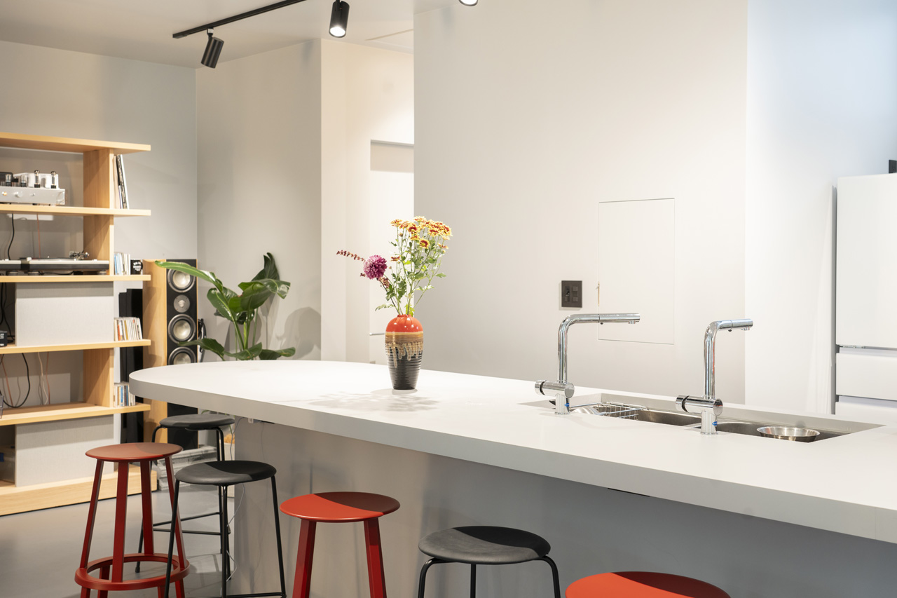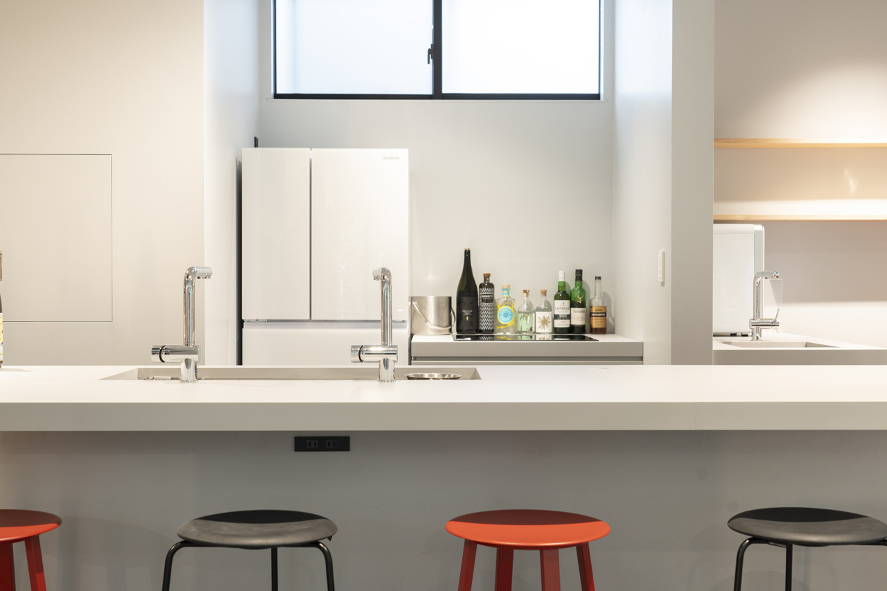 明るくクリーンな印象のバーカウンター付きイベントスペース。