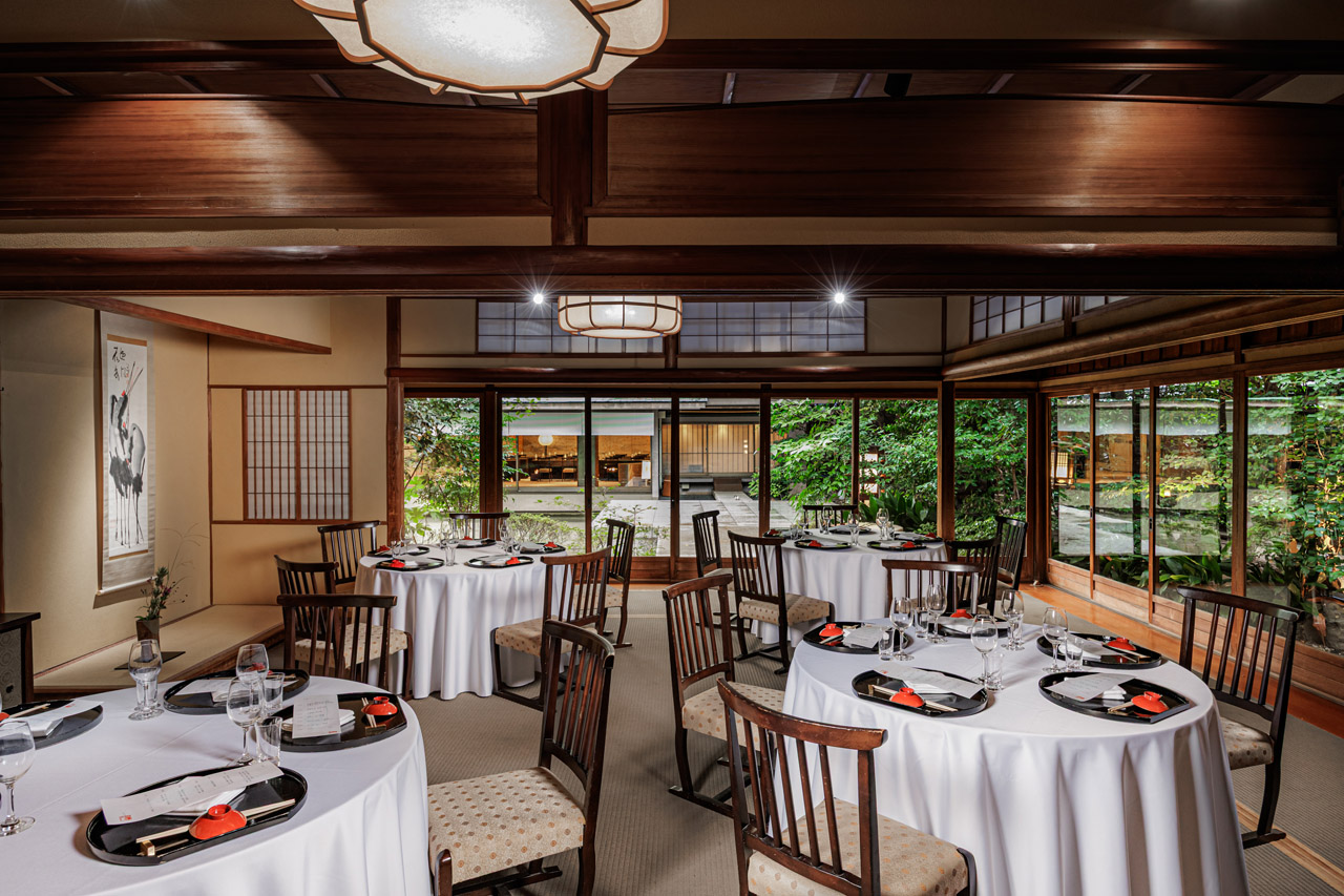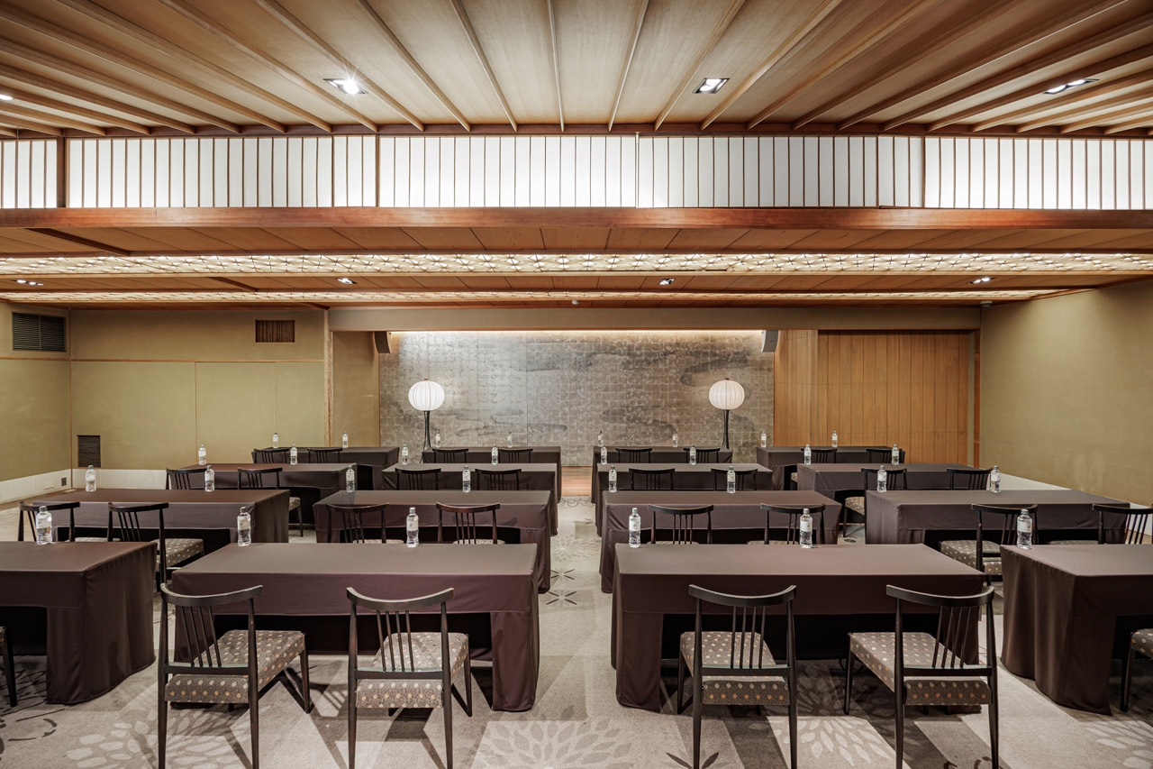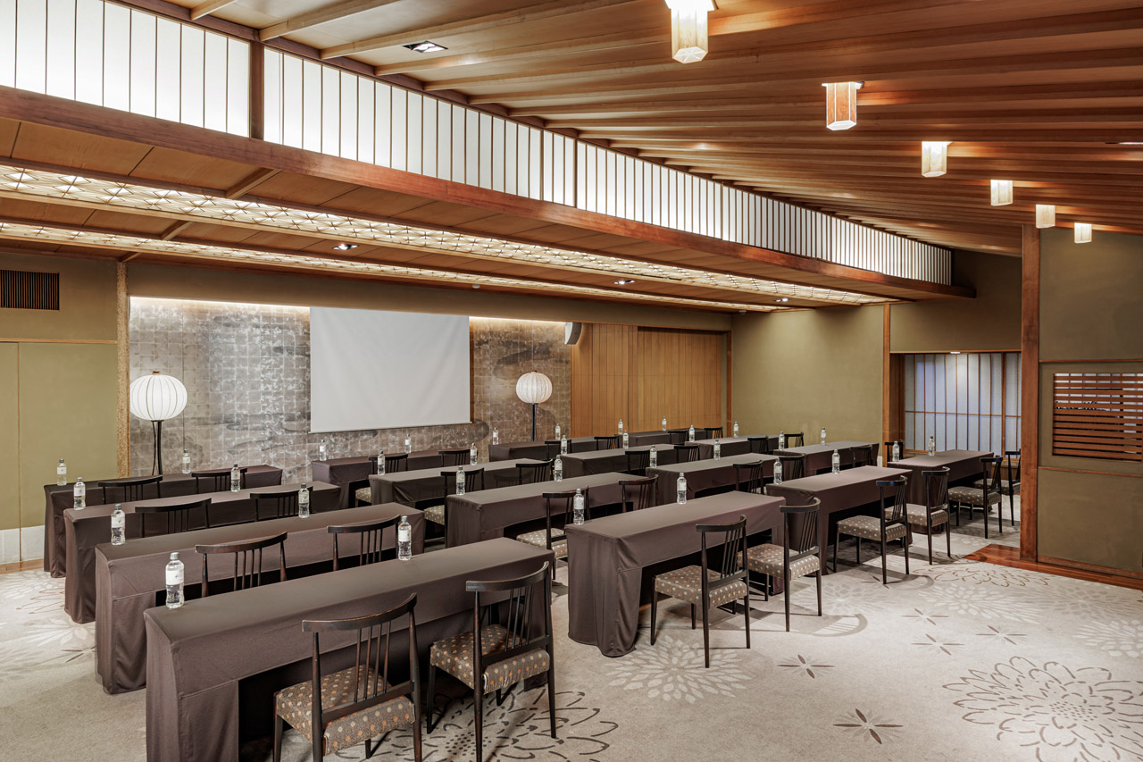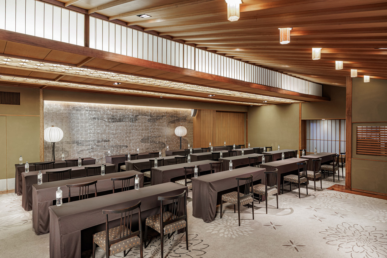 歴史を持つ旧料亭座敷跡のモダンな日本建築と、自然光が差し込む木材とガラスを活かした開放的で上質な空間の室内が調和した会場です。広さは127㎡、最大収容可能人数は約200名。複数のバンケットルームと日本庭園を備えた歴史的価値を誇る会場スペースです。