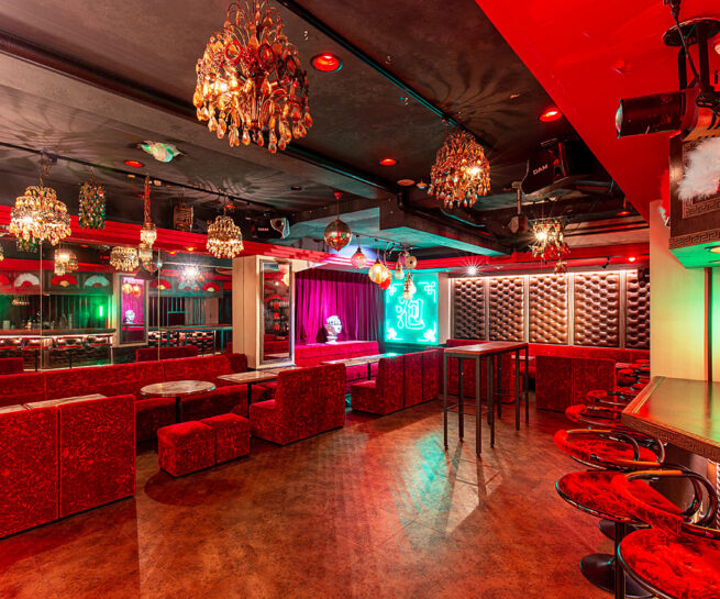 赤を基調とした空間は華やかさやインパクトを演出でき、イベントや撮影、パーティ会場としてのご利用にオススメです。
